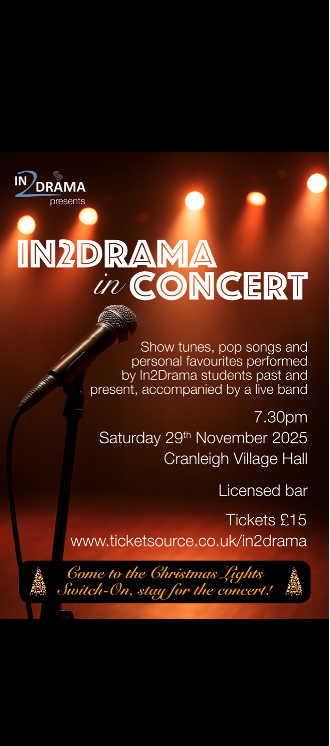 Saturday 29th November is going to be a big day in Cranleigh. Not only is it the big Christmas Lights Switch-On complete with street entertainment, festive foods and funfair rides (it all starts at 4pm by the way), it's also the day of our very special concert at Cranleigh Village Hall.